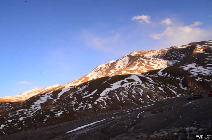 昆仑山,真是巍峨雄伟,来到她怀里的时候已经日落西山了,由于塞车到了这段在慢慢蠕动了,也没机会下来好好观赏和拍照了,巍巍昆仑,屹立高原,残阳暖雪,冷月冰山。过了昆仑,一路下山冲到山底的格尔木,不过我算是领教了G109上卡车老司机的威力了,也许是他们对路况比较熟悉,一过了昆仑山,像是洪水猛兽一般开着挂斗往下飙啊,那彪悍的作风让我们开小车的无地自容,后面大灯不停的闪,喇嘛不停地叫,那可是气喇叭啊,我的亲哥哥,绕了我们吧,真怕他们一个不小心把我们给辗轧了,也只能尽量配合着他们的节奏往下冲。应该是9点多钟到了格尔木,进城的路边选择了格林豪泰(黄河西路旁边,旁边就是加油站),酒店很新也很实惠,旁边吃了一顿安心睡觉!