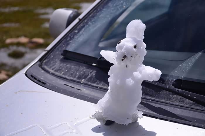 从那曲出发,沿G108往格尔木赶。昨天下了雪,出来后就是路边到处是少许的积雪,大货车开始多了起来。看着积雪,女儿开始兴奋,要下来玩玩!在一个小山岗,停下车来好好玩了一番,外面温度挺低的,但是手摸到雪上的时候才明白冷的含义。女儿匆匆忙忙做了一个小雪人,取个名字叫“什么鬼一号”,说等后面再建二号,挺有意思的,对于南方人来说算是第一次跟雪如此亲密的接触!尽兴后,女儿还把一号放在的副驾的车头,陪我们走了好一段直到它融化拐弯时被甩出车外。天气不错,边走边玩,一路的小错是勾不起我们的兴趣了,安多县吃了午餐。其实安多县也不错的,在G109旁边,挺方便,知道的话昨天应该在此过夜而不是折回到那曲。