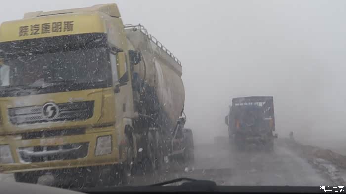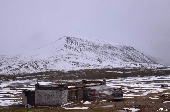 接着往前走,G109的路况是很多波浪坎,一路都得小心翼翼的开车,很多车友说路上见到很多黑色的刹车印的地方一定要慢下来,这是老司机给的很好的忠告。后来天公不作美,又下了半天的雪,雪下得大的时候麻烦就是前挡起雾,各种方法用尽,小心往前走着,这一会儿对雪也开始厌倦了。直到唐古拉山镇,快6点多了吧,本来想赶路的,但是得先停车把晚饭先吃了。路边的一个四川菜馆,进去后有两位四川来的驾友也在点菜,顺便聊了起来。老板的消息是这是今年的第一场雪(听起来,我们还是很幸运的样子),前两个礼拜下了雨,但是雪没下下来,我们是赶上了,前面不冻泉那边塞车厉害,老板弟弟开货车的,拉菜昨天从格尔木回来现在还没到,说都是堵车惹的祸,建议是吃完饭直接在这边休息了,明天早上再走。老板还说过段时间大雪封山后他们就开始关门回去老家了,每年开春雪化了再过来。这边的老板都挺好的,吃饭和住宿的时候别忘记跟他们多唠唠!两位同行的老哥是四川过来的,都退休了,两个人开个小四驱(铃木)来看看祖国的大好河山,从成都、拉萨直接过来了,西藏没去雪山和其他地方,听我们的路线和趣事还挺羡慕我们的。他们还是挺节约的,两个人点了一个毛血旺就解决了。后来他们推荐我们住旁边的诺拉宾馆,有停车场也不贵,还有地暖。饭后我们采纳了他们的意见,一起住在了这地,还真不错的!怕下晚上下大雪,大家都把雨刮立起来以防万一!