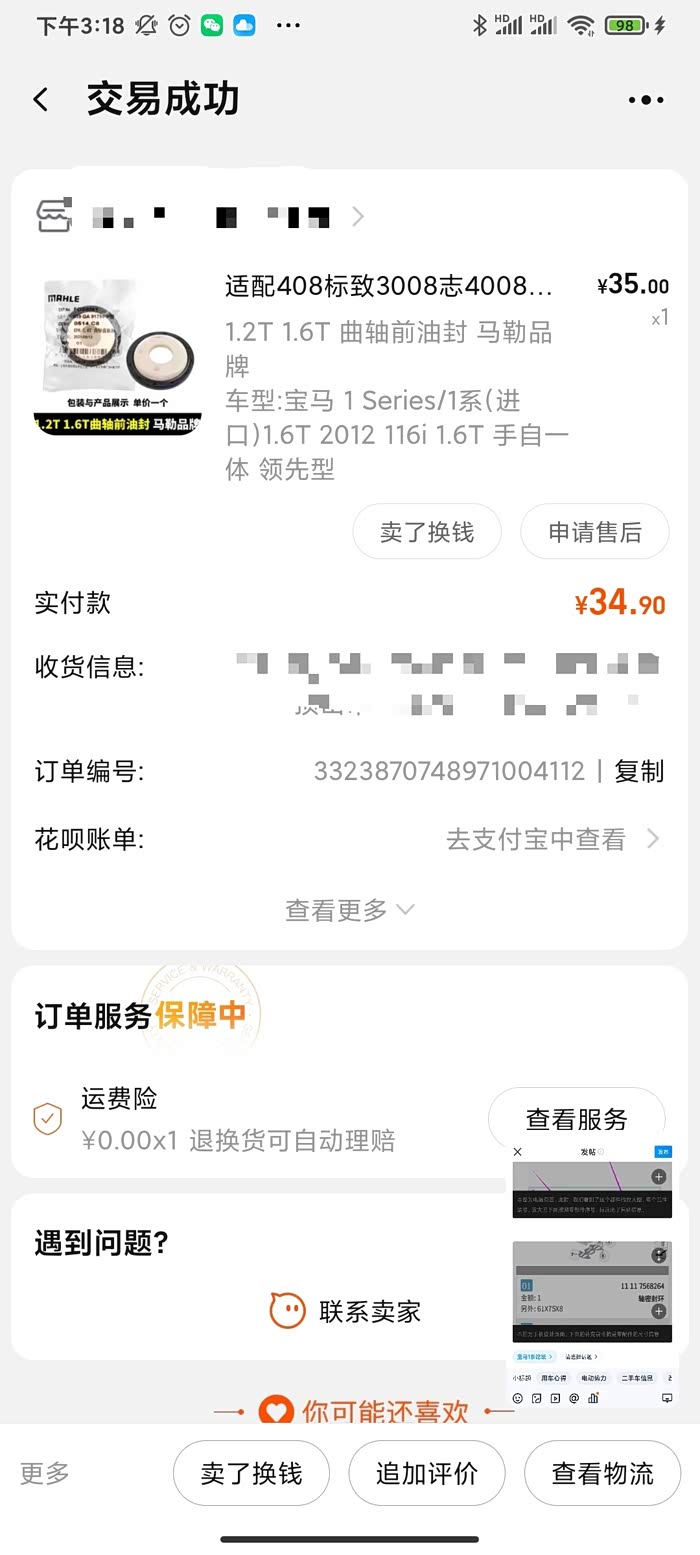 同样的方法,宝马的很多零部件,都可以用国产后一些品牌的,真的比所谓原装的要耐用多了。类似的还有水泵轮,皮带,气门油封,各种密封圈,都可以用改进的,便宜又好用!