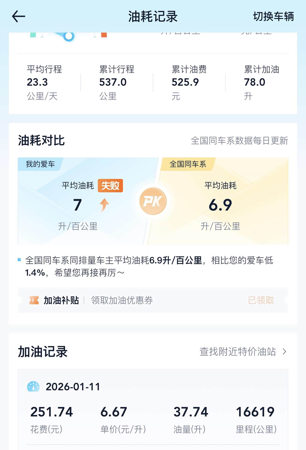 冬季的油耗慢慢上涨了