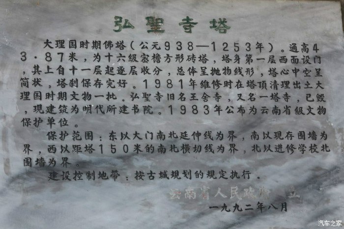 弘圣寺又名一塔寺。在大理古城不一定能看到三塔,但一塔在很多地方是能够看到的。一塔寺遍地荒草,原寺庙建于大理国时期,已毁灭不见踪迹。独留一塔矗立,塔通高43.87米,为十六级密檐方形砖塔。
