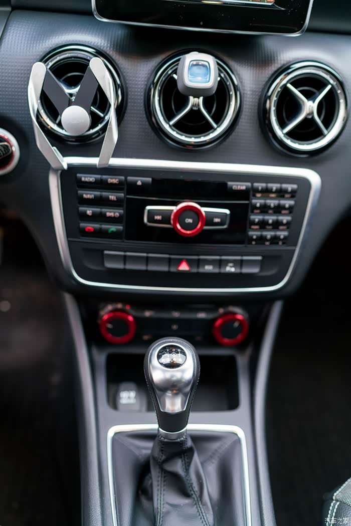 中控区域也是奔驰的风格,圆形出风口3个(我不经要吐槽,我手机夹真的很难装上啊!还会掉!),按钮区(前车主也没有选配电热座椅和分区空调,话说真的会有人用那些数字键吗?)CD和广播功能也包括在内。