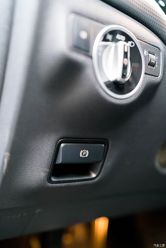 方向盘左侧是空调出风口,灯光控制,有了自动大灯和电子手刹。