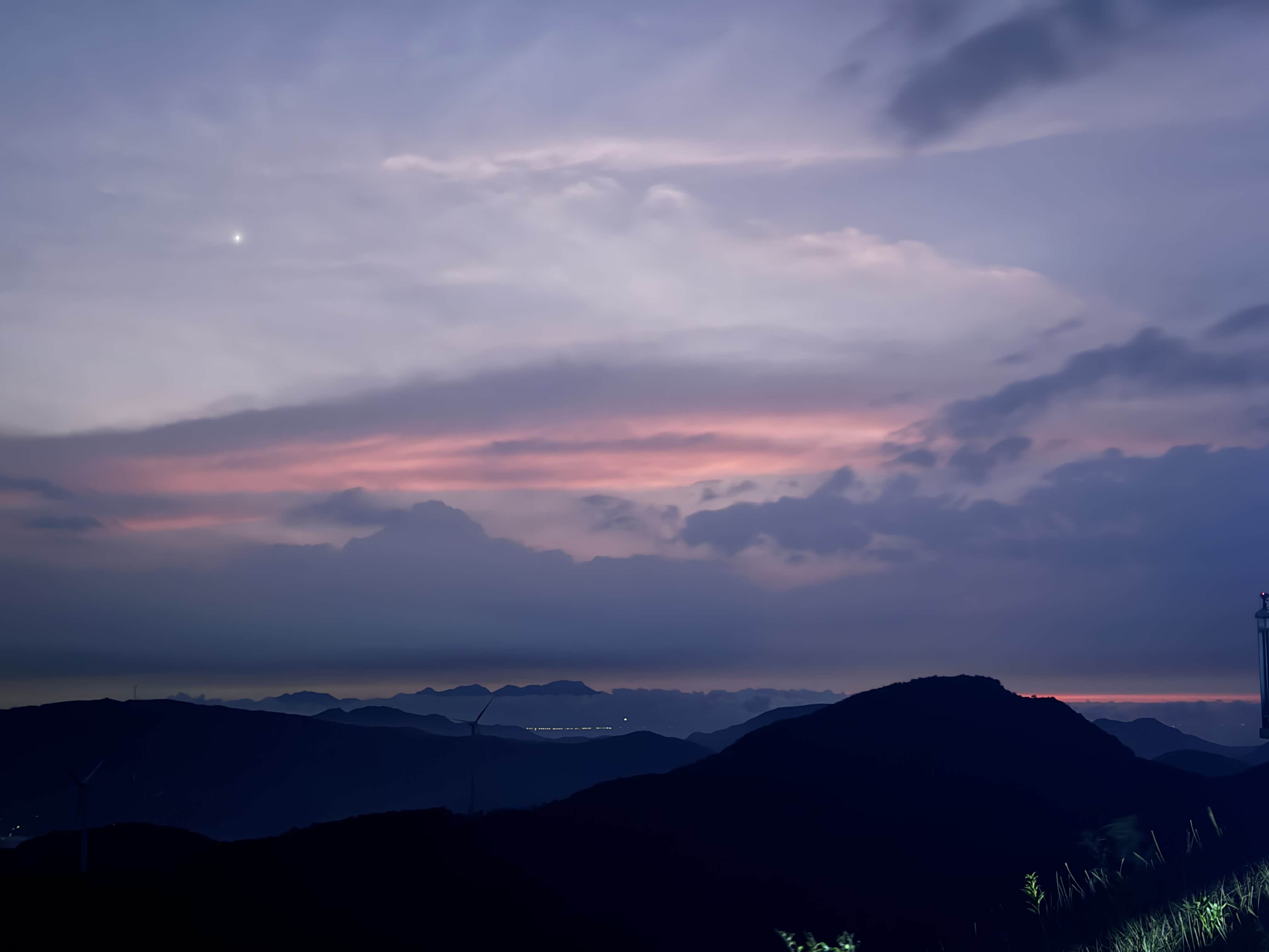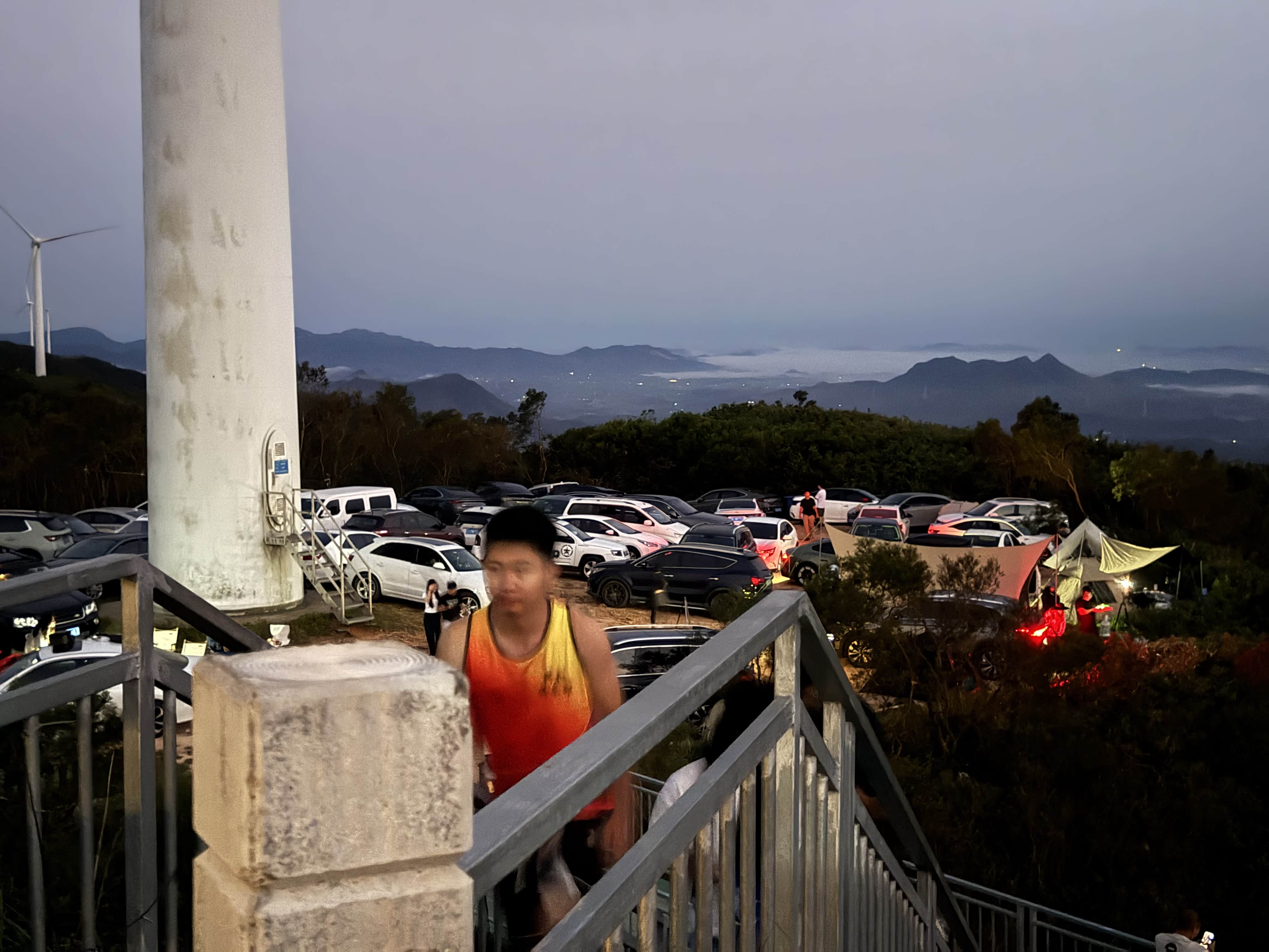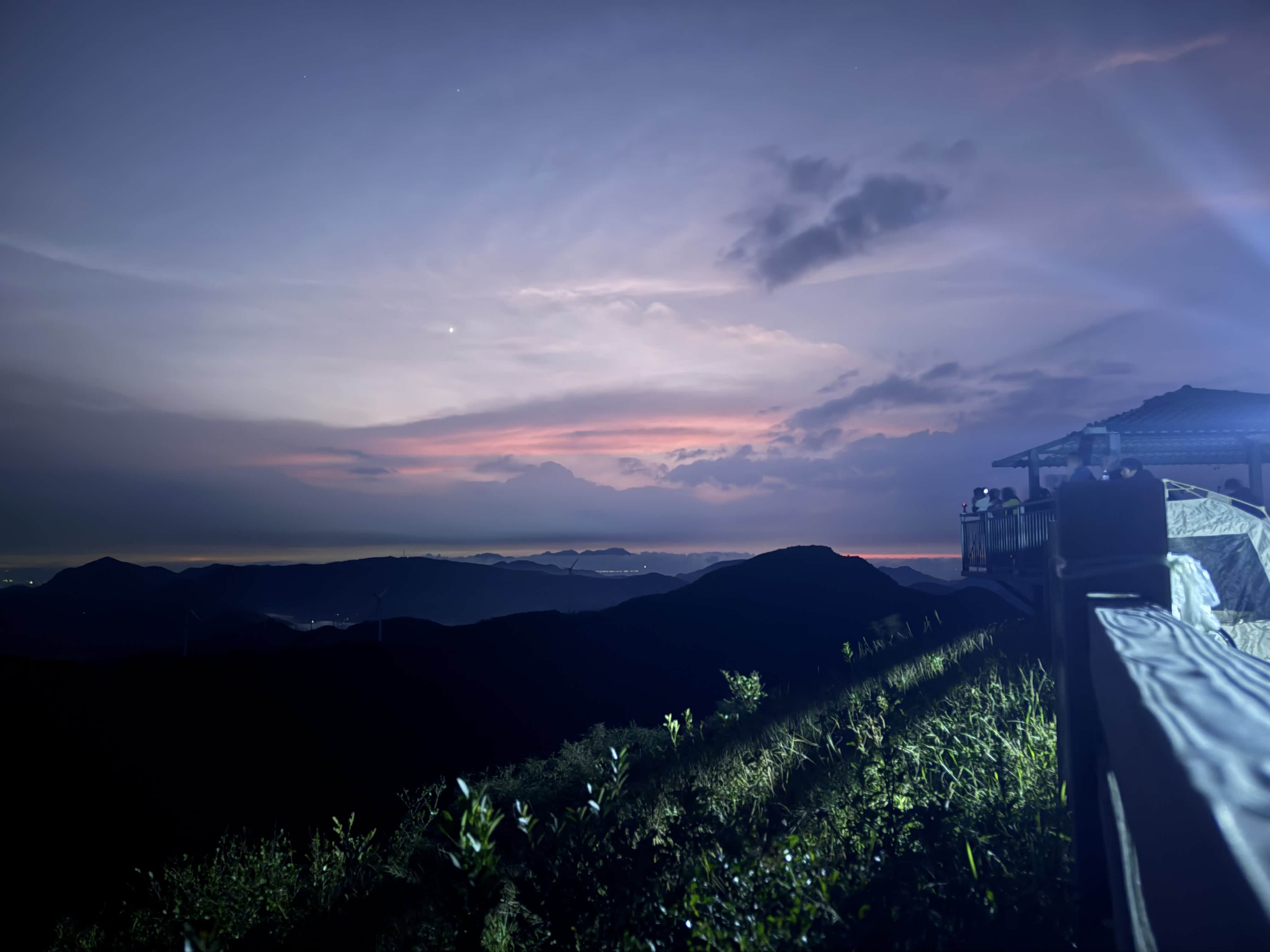 9月30日凌晨0点30分,全体成员在广州指定集合点汇合,清点物资后准时出发。凌晨高速车辆较少,主驾驶按照既定路线平稳行驶,副驾驶实时更新导航信息,避开少量施工路段。凌晨2点10分,我们在中途服务区短暂休息15分钟,补充能量后继续前行。凌晨3点10分,车辆抵达隆文老村风车山山脚,此时天色未亮,我们打开车辆大灯及手电筒,缓慢驶入盘山土路。该路段坡度较陡,部分区域有碎石,主驾驶谨慎控制车速,其余人员协助观察路面情况,经过25分钟的缓慢行驶,于3点35分抵达13号风车附近的观日点。
