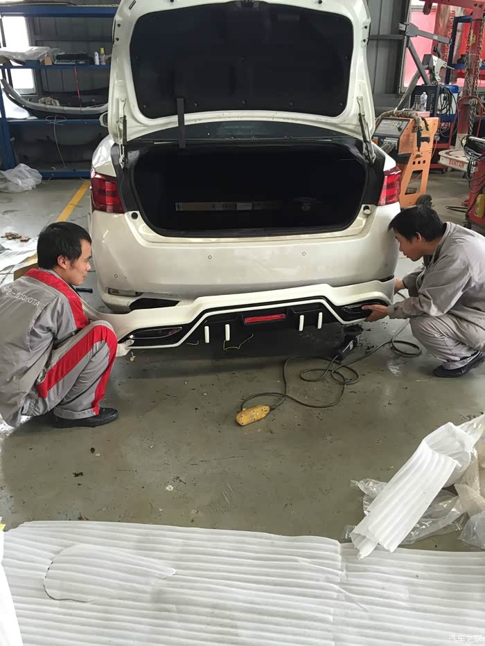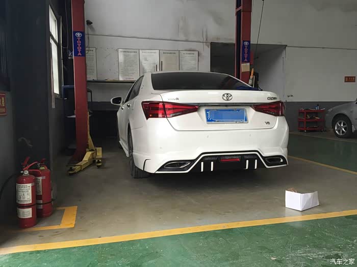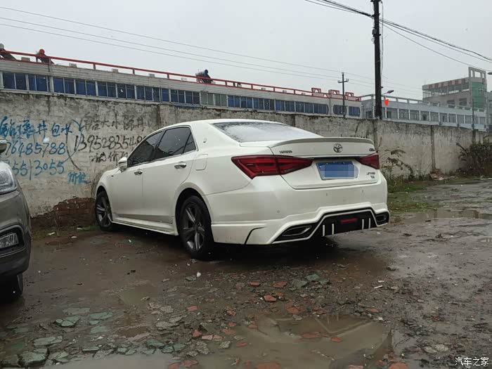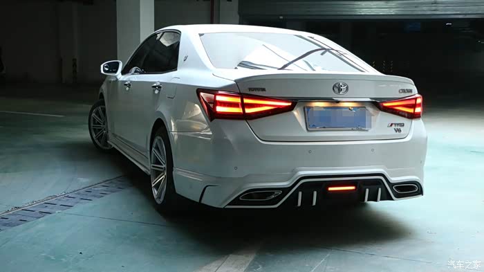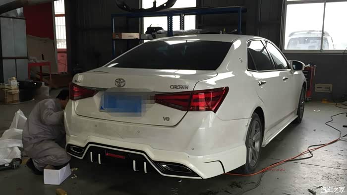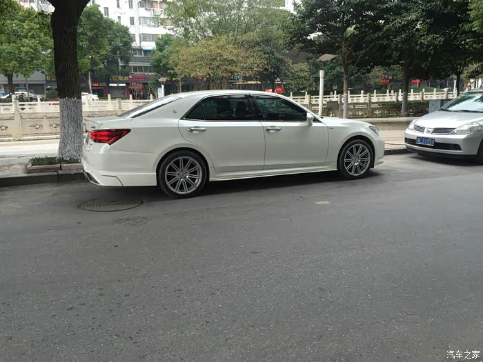 No.3 改装篇:之前的文字提过,新皇冠的确漂亮,但对于外观控,又买不起豪车我(心中总有一个保时捷Panamera梦),想到这个,宝宝就不开心,总觉得他的设计属于那种虎头蛇尾,前脸运动霸气,车尾设计就显得中庸了一点,就算你隐藏了双排气管设计,能把尾部设计的雷克萨斯ES那么协调的话,我也就不瞎折腾了!!支持我想法的一定要留言顶起哦,分分钟打脸丰田的设计团队!!要说皇冠的改装经历,还挺**的,隔三差五的翻看各大论坛,就是找不到一篇完整的外观改装方案,改装店又好难买到改装件,只能在神奇的X宝寻求一点希望,黄天不负有心人,新皇冠上市一年多,终于有了几件像样的改装件,瞄准,下手,不手软,哈哈,双排气管的运动包围等了好久,听卖家说是进口件,好吧,价格也很进口,如果改装一味的提升运动范,我更想提升了他的气质范,因为皇冠骨子里给人的感觉就是,最终放弃各种19寸五幅运动轮毂,选择沃森cv4,配得上皇冠低调的奢华理念!!没有用碳纤维材料,没有用黑漆(因为我是珍珠白),改完,尽量让更多的人认为你的车子是原厂套件!!而不是普通的改装车那么花哨!!我觉得这样的改装,才有意义!!!