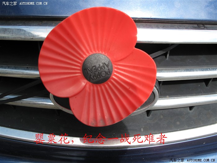 英国好多车子前面都绑着一朵罂粟花,据说是为了纪念第一次世界大战英国的众多死难者