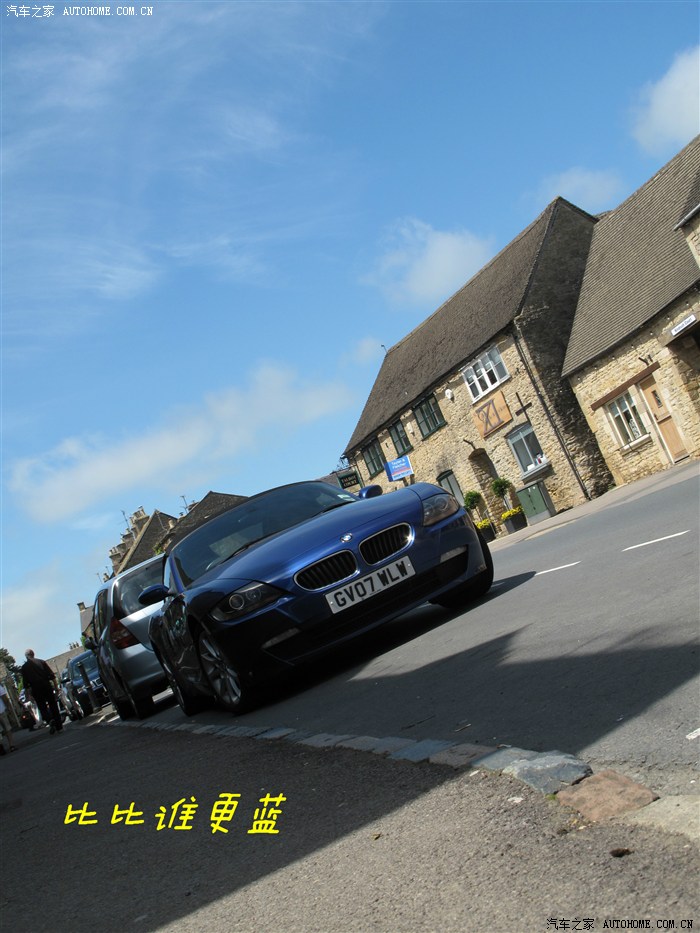 路边停的一辆蓝色BMW Z4,与碧蓝如洗的天空相得益彰