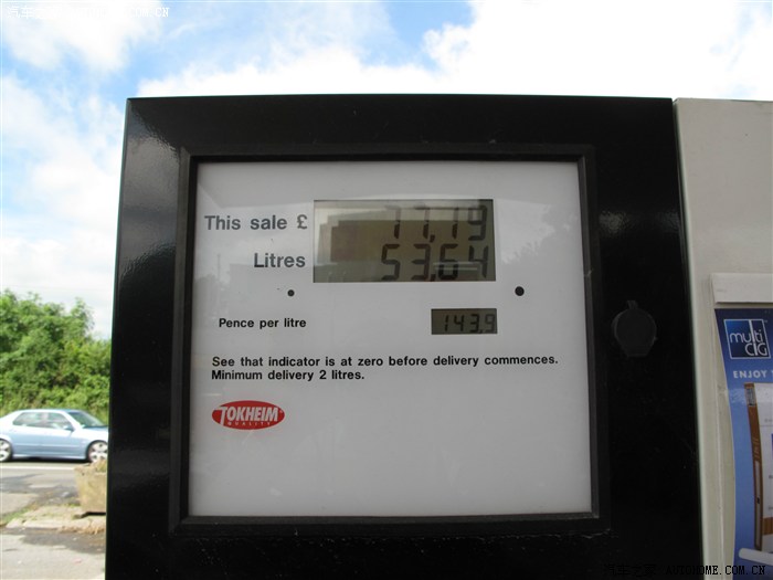 我们的车加了53.64升柴油,总价77.19镑