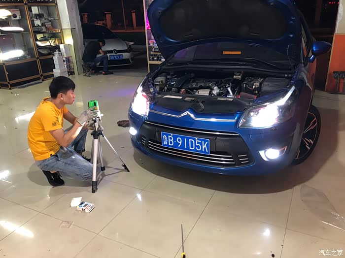 升级进口海拉5透镜?欧司朗氙气灯?红色恶魔眼?大灯熏黑?c型日行灯雾灯,效果立马出来了,熏黑的大灯磨砂面亮面明显很漂亮的,车下周出厂详细图见下一贴。