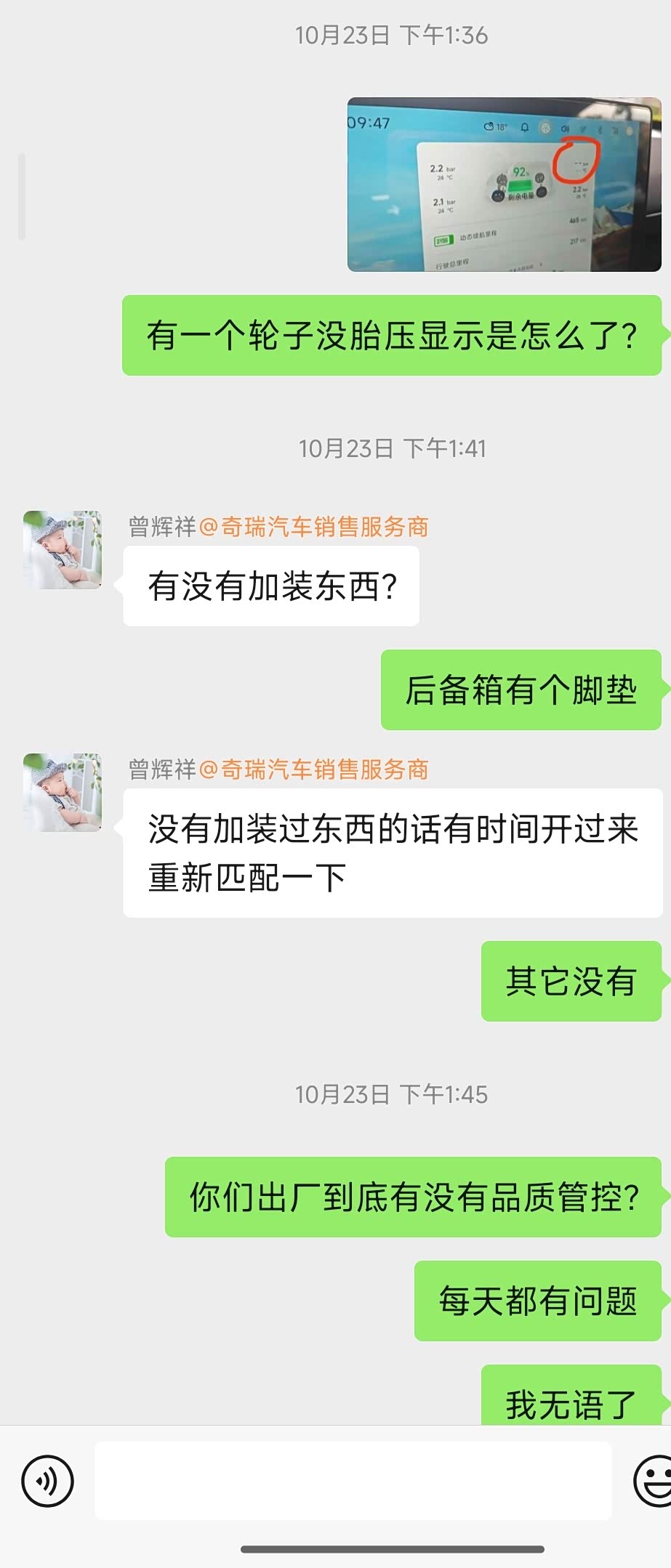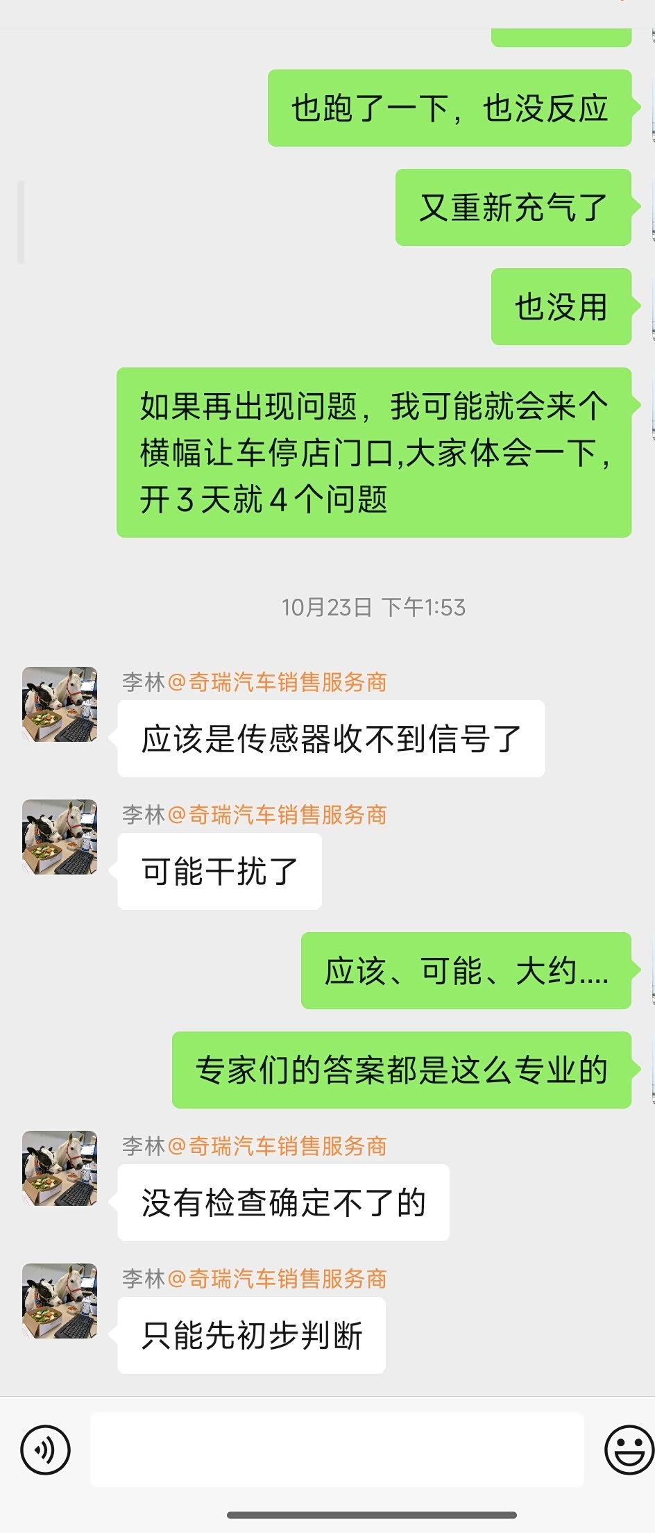 我对奇瑞的售前、售后、产品质量表示怀疑