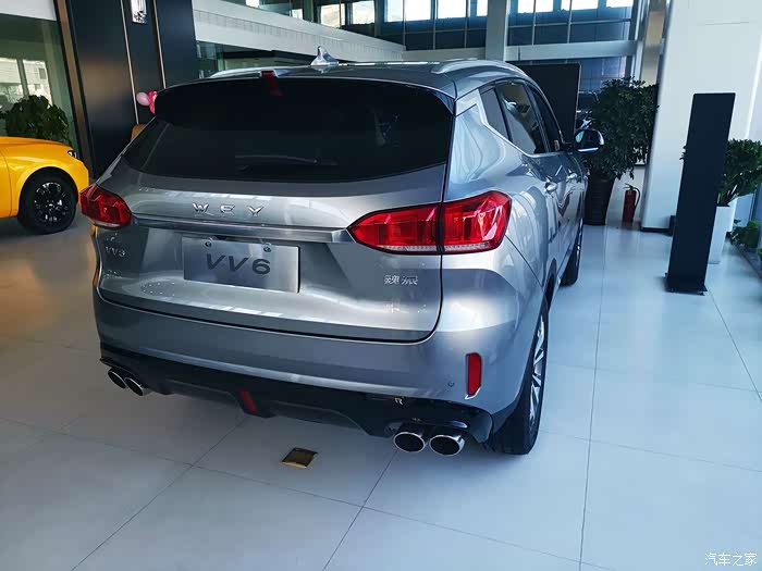 因为去机场顺路回来路过WEY新店,我打算做一下入冬检查,朋友也想看看WEY的新车VV6,车上聊天的时候聊到WEY这个车,自然是实话实说,反正我用车整体感觉是很不错的,车友群里有人说VV6不错,之前只在网上看过照片,所以我也想看看VV6实车怎么样!新店装修的不错啊,很有档次....进店看到的第一辆就是VV6,这个颜色我特别喜欢,因为之前买VV7的时候就想买类似的灰色,结果要等很久,就换了白色!VV6整体的设计还是WEY家族的风格(我就是颜控 哈哈 就喜欢这个风格),前脸造型依旧霸气四射,尾部的翘臀比VV7的高一些,感觉也不错! 内饰应该是亮点,虽然整体感觉还是WEY的风格,但是细节上跟其他几款车差别很大,中部的按钮区质感非常不错,而且更换了电子档杆,非常奈斯!A柱的音响看起来很有档次,使用起来手感我给十分,希望VV7换代也能换电子档杆!一辆车就是由众多的细节搭配整合起来的,每个部分都要细致,所以VV6整体看起来很协调,因为有VV7所以坐在VV6驾驶室内,感觉更细致,新鲜感十足我喜欢!有兴趣的车友可以去店里体验试驾一下,可能会有惊喜哦!