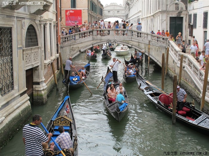 威尼斯的交通工具-贡多拉,后面的上方背景是叹息桥。