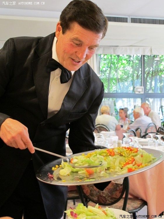中午就餐时餐厅的服务员,意大利的餐馆酒店里年轻的服务员很少,大多都是上岁数的中年人,经验很丰富,服务也很周到,并且穿着讲究,比较有绅士风度