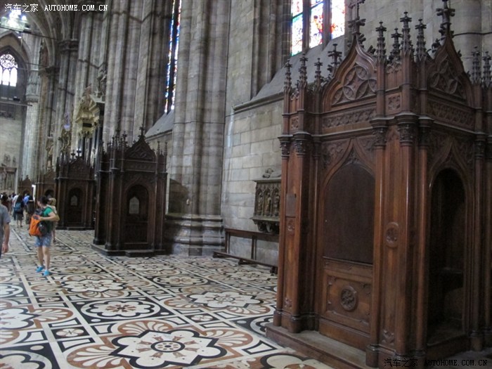 米兰大教堂左侧回廊中地面,一块一块的大理石拼装而成的,据说叫做马赛克。