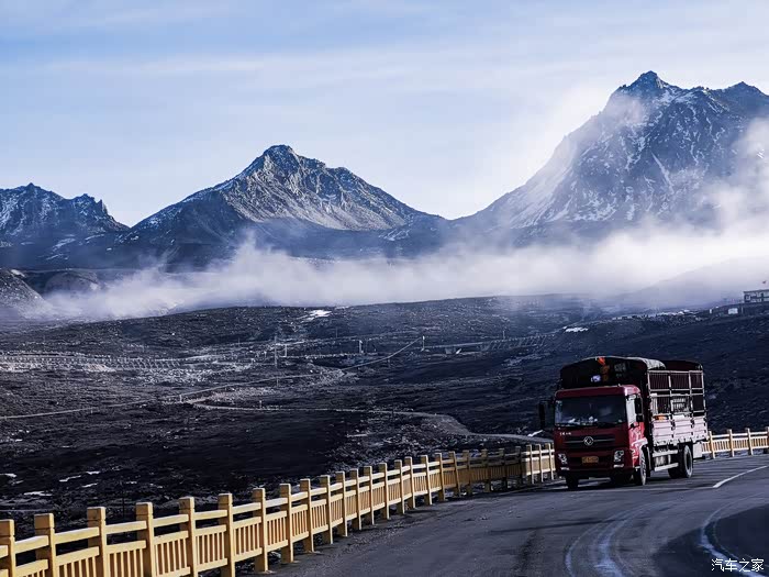 高山下的云雾让山峰显得更挺拔。路上的发货挺多的,我说在的这个地方是大巴车休息点。