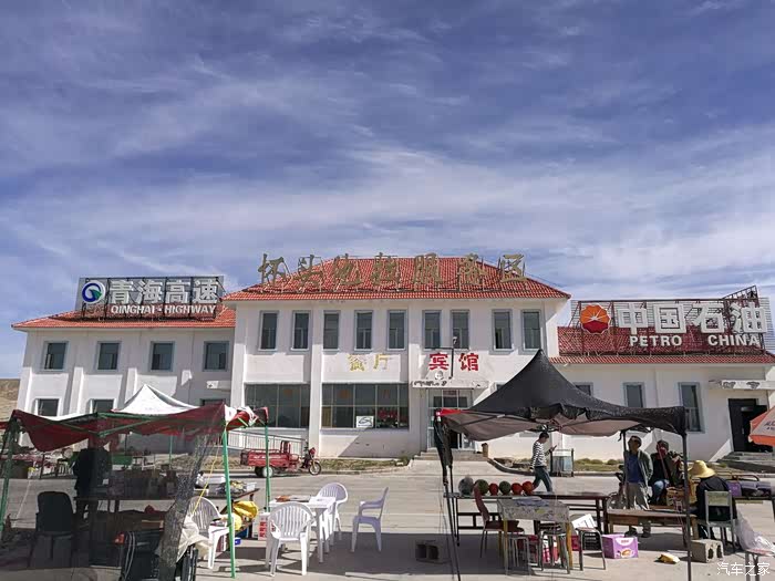 说实话,鱼卡服务区可真不怎么样(青海这条线上的服务区都挺简陋),赶忙上厕所解决内急,还好服务区提供开水,就将就着喝(海拔都在3000多米之上,烧开的水估计也就80几度左右)大厅内一片狼藉,到处是食品垃圾,我们只能在靠近窗边较为干净的一处,打开自带方便面、火腿肠榨菜等草草充饥了事。总之,要填饱肚皮,补充水分,因为此地离敦煌还有一半多的路程要走。大约一个小时后继续前行。