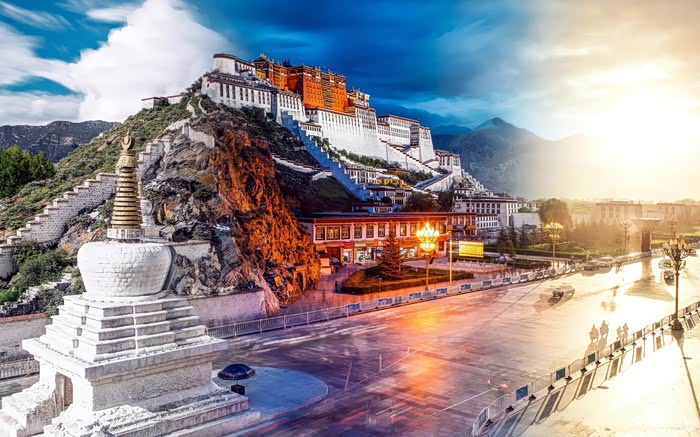 次日就是雪顿节。想起能够见到圣僧,能够目睹圣僧对众信徒摸顶加冕,能够亲历“晒佛”的宏大场面,怎么都难以入睡,因此总是在心里反复琢磨何时出发、采用什么方式最便捷地去到哲蚌寺......思来想去,总不得解,不知几点才迷迷糊糊地睡去......突然一阵手机铃声响起,原来是摄友在呼叫出门了,赶紧起床,时间才凌晨五点。急速收拾一番下楼,大家都已经聚齐,个个虽然睡眼惺忪,但是精神都很振奋。酒店值夜的服务员见状,问你们这是准备去干啥,我们说去哲蚌寺看雪顿节。他摇着头告诉我们“这个根本不可能!”他说,雪顿节是藏民最隆重的节日,前几天数以万计的僧人和藏民就聚集在寺庙的周围,现在早就水泄不通了,汉人根本进不了寺庙,连远观的机会都没有......我们怎么都没有想到会是这样!究其原因,服务员说:雪顿节是每年举行,但是“晒佛”和高僧摸顶加冕活动却要三五年才有一次,时间并不固定,也没有预告,且摸顶加冕的名额有限,最多也就三五十个。藏民全民信佛,无论是僧人还是百姓,都以能够受到高僧摸顶加冕为荣,因为只有受过高僧摸顶加冕的人死后才能进入天堂......服务员说他在拉萨都十几年了,也曾去过两三次,但是每次都被人群堵在了庙门外。由此看来,我们不得不放弃了。经过简单商议,大家决定去看看布达拉宫的日出......大街上,没有行人,车也很少,从住处过去也就一公里左右,于是我们一行信马由缰,徒步围着布达拉宫转了一圈: