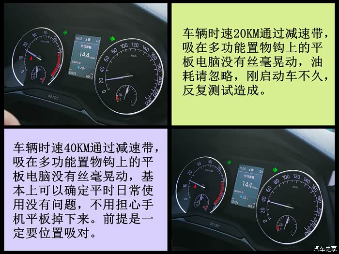 通过道路上的测试及减速带的反复测试,正常情况下不会掉下来。越野路段由于我的车不适合越野,没有测试。但是估计越野的时候也没有几个看平板电脑的。