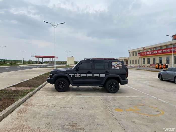 在服务区休息的时候给爱车拍一点照片,前面这款护板很早安装的还是很有用的,再一次沙漠中有一点飞车很好的保护了前杠。