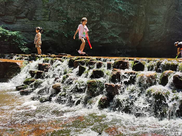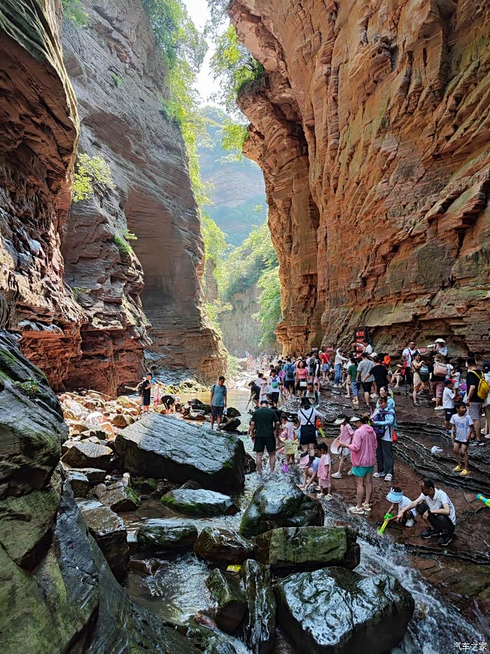 龙潭大峡谷:世界地质公园,是一条以典型的红岩嶂谷群地质地貌景观为主的峡谷景区,咱不是文化人,具体也不明白,就是知道,这里是玩水的好地方,一路可以踏水而行,孩子最好有凉拖,前面不漏脚趾的那种,玩水更安全,费用还低就是门票款。