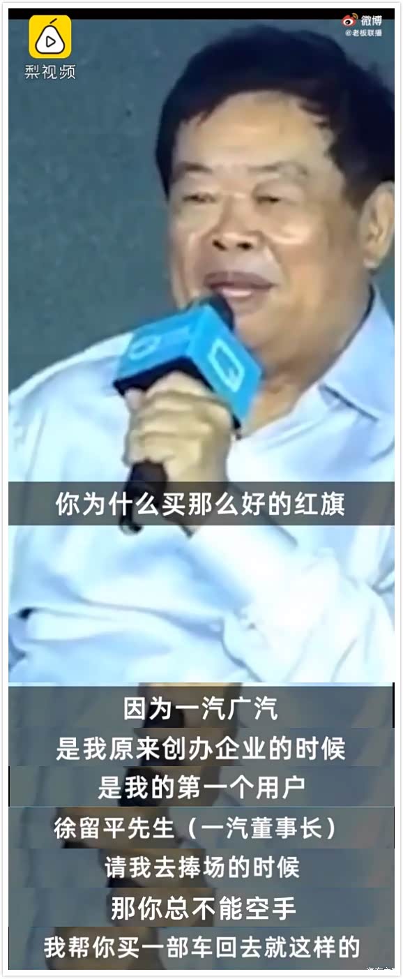关于为什么曹德旺买了红旗H5:我对汽车很热爱,真正你说我爱什么车,我很告诉你,我坐过人家借我的宾利,那个我坐不起。那你肯定说,你为什么买这么好的红旗,好像好几百万买的。那车没有开到我家里来,还是停在上海。那为什么买呢?因为一汽广汽是我原来创办企业的时候,是我的第一个用户,***(一汽集团董事长)请我去捧场的时候,那总不能空手,我帮你买一部车回去就这样的。”曹德旺说道。