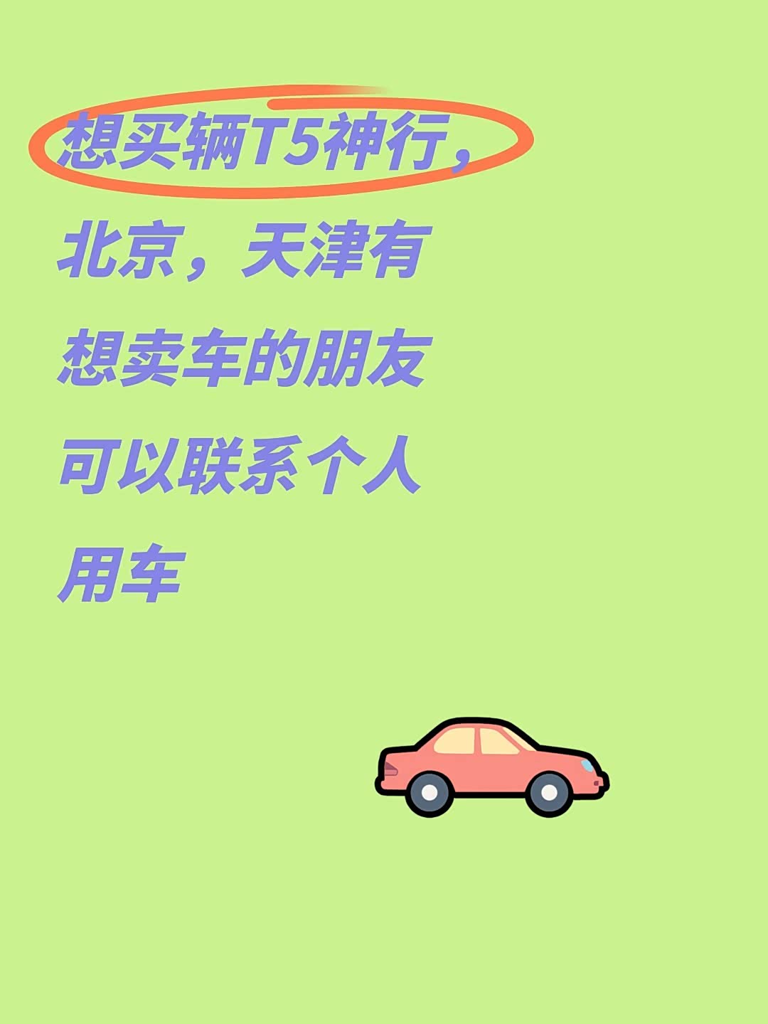想买辆T5神行,北京,天津有想卖车的朋友可以联系个人用车