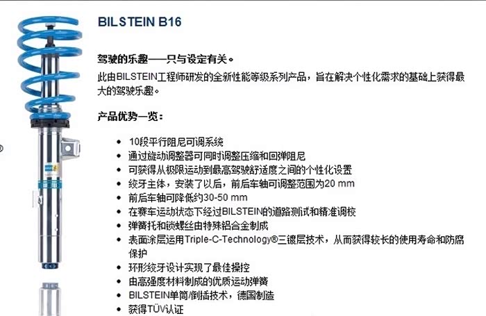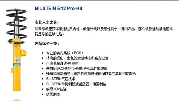 经典搭配:B12黄金组合(倍斯登B8避震筒 搭配 爱巴赫黑簧)