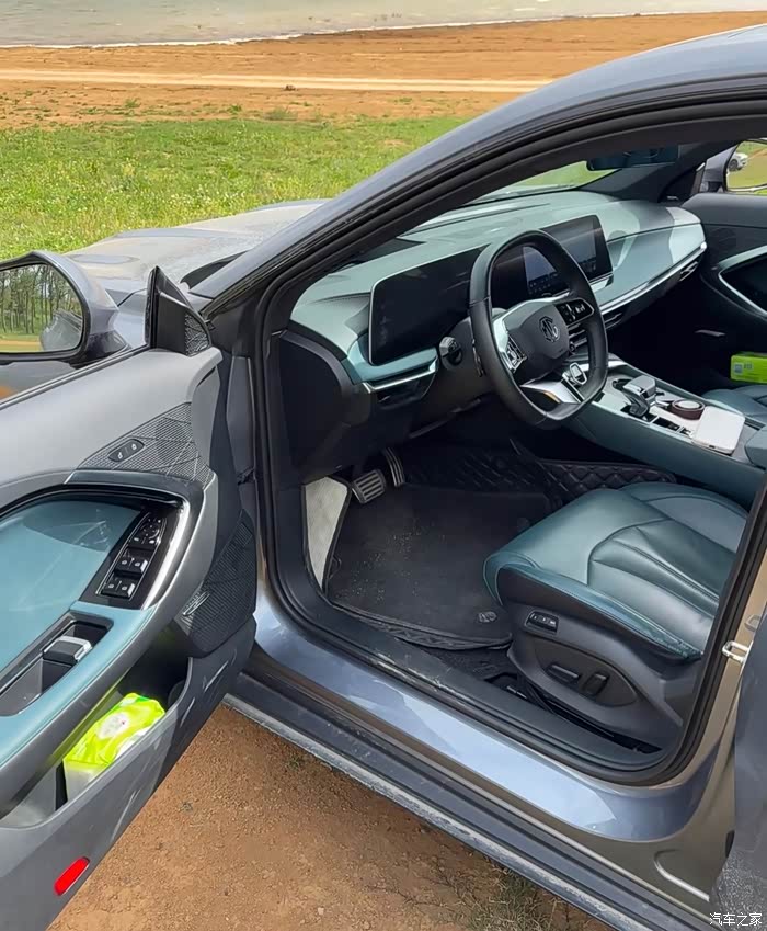 内饰也没让我失望,不是那种廉价的塑料感,到处都是软乎乎的材质,摸起来很舒服。我选的孔雀绿内饰,小众又高级,跟车身颜色呼应上了。33英寸的一体式大屏看着就大气,开车的时候导航、听歌都很方便,而且反应挺快,不卡顿。座椅坐着也舒服,包裹性很好,支撑到位,开久了也不觉得累。