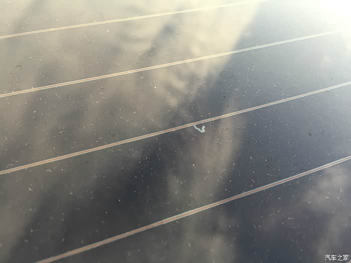 我想大家多少都有听说过,现在市面上的贴膜,多数都是暴利,而且还存在不少的假货,也就是所谓的贴标膜。因为我们这儿小城市,没有专业的贴膜店,所以最终选择在4S贴膜,涵盖在赠送的5888套餐里面,贴的是3M膜。膜有质保卡,也 剪了一小块下来看过,透光率不错,撕开后没有恶臭味,应该是正品,不过这4S的贴膜手艺实在是一般,才没多久你看这后风挡就已经有气泡了。因为他们其实也只是外包的,换句话说,和外边一般的没有无尘车间的贴膜店、洗车店没有多大区别。