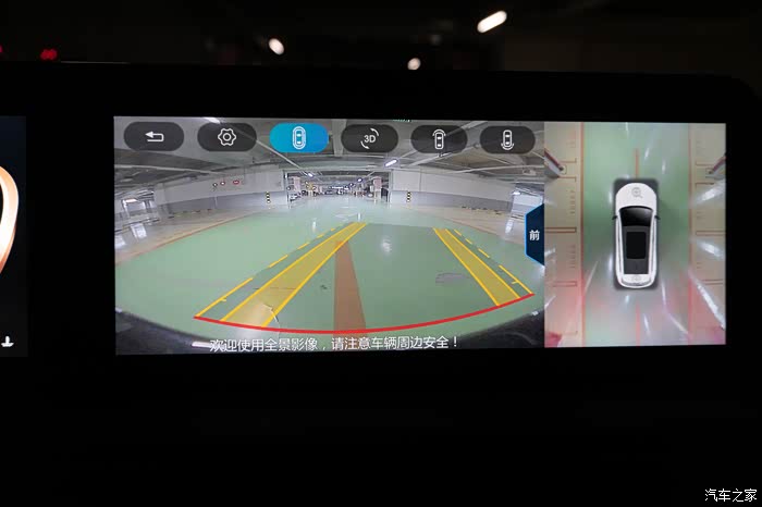 2.这个车有一个AR功能,把一个3D的车放入真实环境合成的全景影像中,这个功能绝对绝对绝对的鸡肋…………不,甚至可能不如鸡肋,因为它不仅食之无味,弃之也一点不可惜,这个功能除了扰乱驾驶者,真的是一点毛用都没有。我还是喜欢gs8那种老老实实提供原始影像的模式。