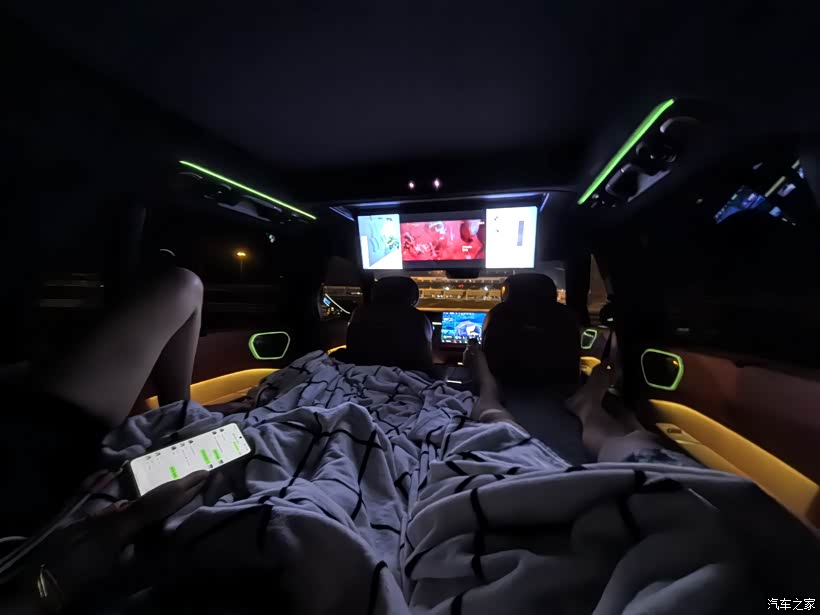 首先900绝对不是属于优雅、奢华的那派,像保时捷、劳斯莱斯那种一眼给人的跨阶层豪华是不存在的。900的内饰属于科技与传统的融合和妥协,车内大量的使用了nappa皮,车顶也用了翻毛皮,质感上手感上都很不错,但是35寸的中控屏,35寸的娱乐屛,还有遍布车里的各种摄像头,给你的感觉更偏向于科技,是一种轻奢的又能轻易接受的豪华。像氛围灯,尤其是哈曼卡顿音响盖的,夜晚无灯时点亮,那种似玉般的感觉,加上哈曼卡顿音响带来的好声音,配合其他的氛围灯,让一个人的孤独之旅变成了一种享受,坐在车里安逸,宁静,似水流年......真的会让人爱上。