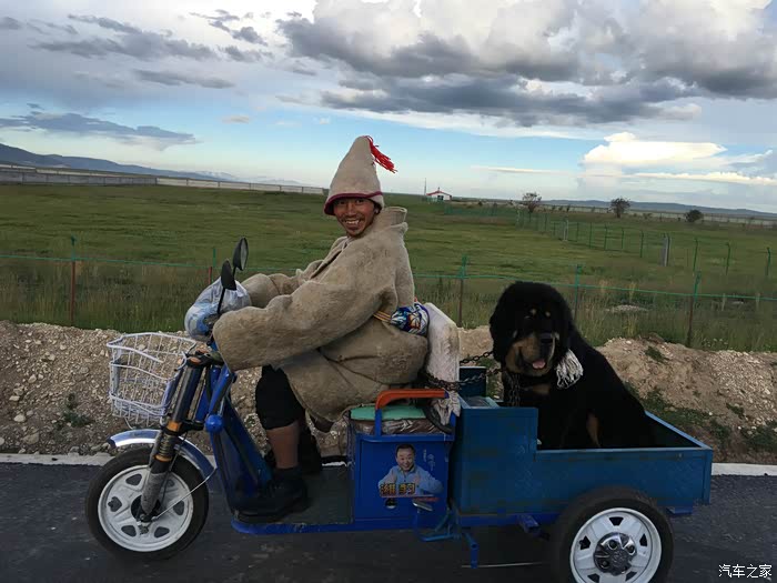 这位老哥非常好,看我们这么喜欢他的獒,就停下车子让我们拍照。有朋友见此片后说:“这藏獒可真老实,憨厚!”我答:”老实、憨厚,看对什么人。对它的主人,那是绝对的忠诚,温柔似天上挂着的白云。对陌生人,它可是怀有极为强烈的敌意,下口狠。“据藏区的朋友说,一次有獒咬人,死不松口,后来家人用铁棍把獒的嘴橇开,才使伤者脱险。