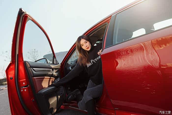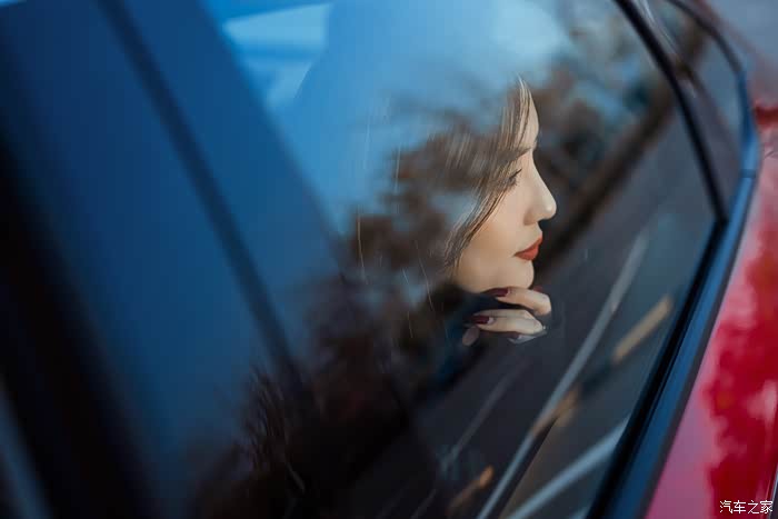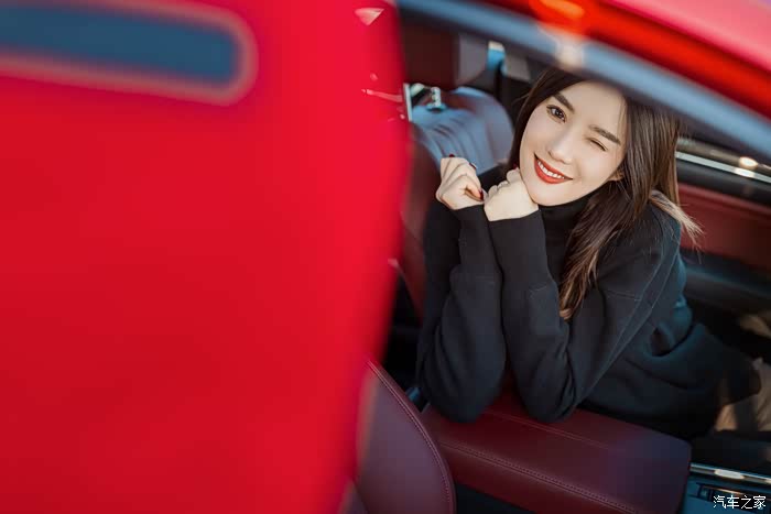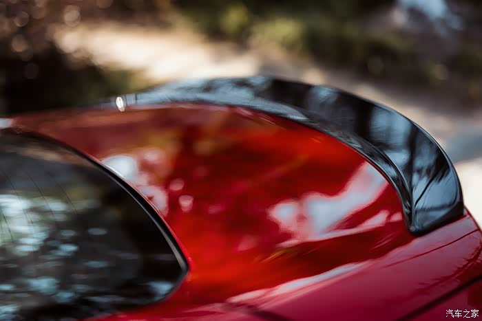 而要说让我更有感触的还是小梦的这台幻夜版本,原本她选择的极速绯红车漆就已经非常少见了(我甚至从未见过),金属漆的运用不仅增加了整车的质感,鲜艳的红色更是给人更强的冲击力,能够激发更强的驾驶欲望,相比起普通型号,幻夜版本在细节的处理方面也更加的有特色,电镀黑的前格栅、在它的上方还有电镀的黑饰条、大灯内部采用熏黑的反光面、车顶的鲨鱼鳍天线以及尾部的小尾翼也都披上了黑色的外衣,这一系列的点缀与红色的车身颜色形成鲜明的反差,对车有了解的朋友应该知道,红黑配色一直是运动竞技座驾的专属搭配,说到这,不知道大家还注意到了没有,小梦还为这台车加装了前唇、侧裙和后唇的装饰,如此注重细节以及整体的美感,不愧为游走在时尚圈的达人。