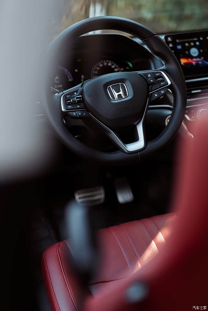 其实听小梦分享了那么多,我自己也上车感受了一番,它的动态感受也确实是让我非常喜欢,因为了有电机的加持,油门的反应速度足够的快且平顺,这是其他纯内燃机车型难以做到的,另外就是悬挂的阻尼以及支撑性表现非常好,无论是在过弯还是在高速状态下的变道,都能给人极强的信心。在转向方面,中心区的响应非常灵敏,而且很线性,每一次转动方向,车身都能立马给出反馈,与此同时,相比同级别其他车型,雅阁的重心设计也相对更低,综合这一切所给人带来的直观感受就是这是一台运动取向且具有一定驾驶乐趣的座驾。