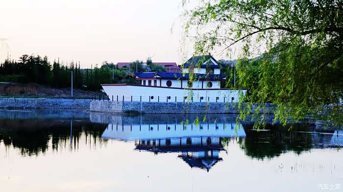 湖的东北角建有两艘古船造型的建筑,