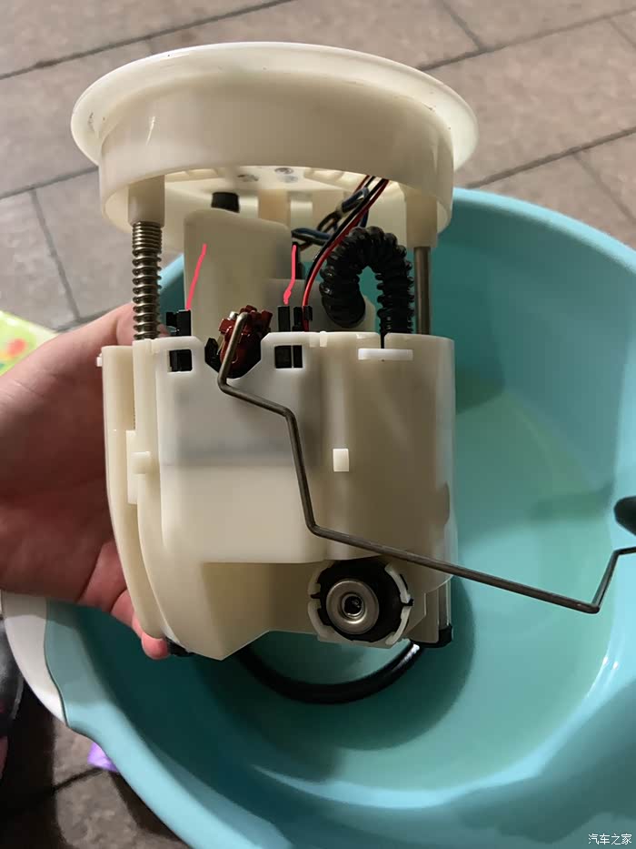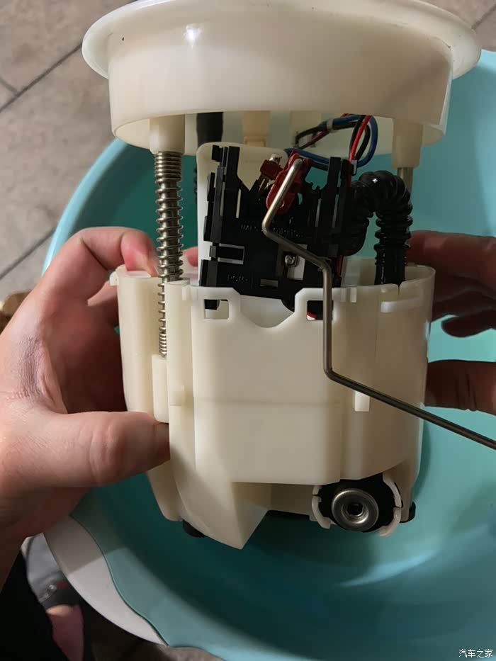 油位传感器,装到总成上。两个固定总成的铁重新装回去。油泵泵芯插头重新插上。