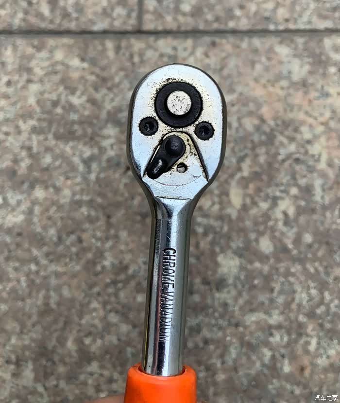拆汽油泵盖的工具,我买的是两爪的,也有三爪 四爪的。 两爪的要两个人才能拆下来。 找个人让他帮你按住汽油泵盖扳手的两端(如上图 红圈圈出的位置),棘轮扳手调至上图位置 然后把油箱盖拧下来。 注意两爪的一定要让人按住油箱盖扳手的两端,不然拧不开。