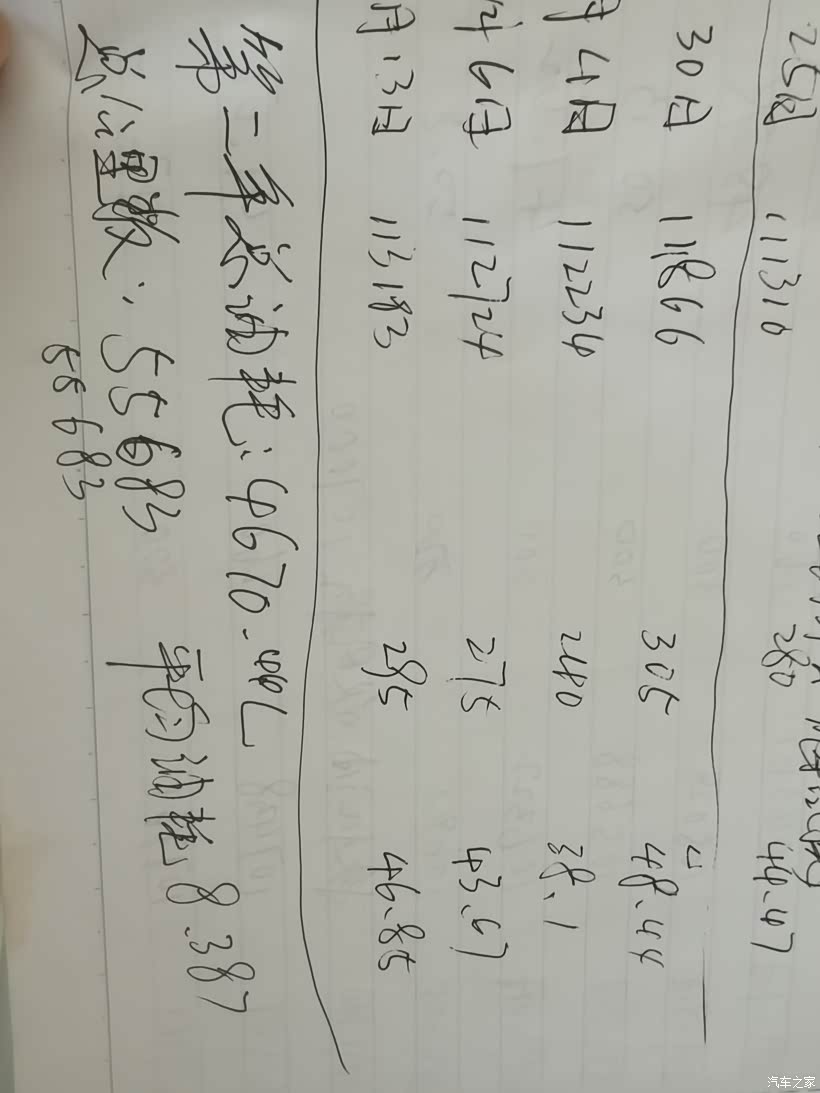 百公里平均油耗:8.67升