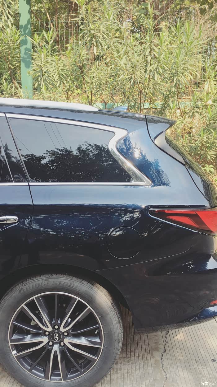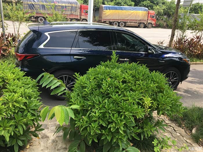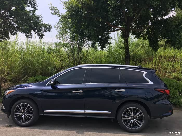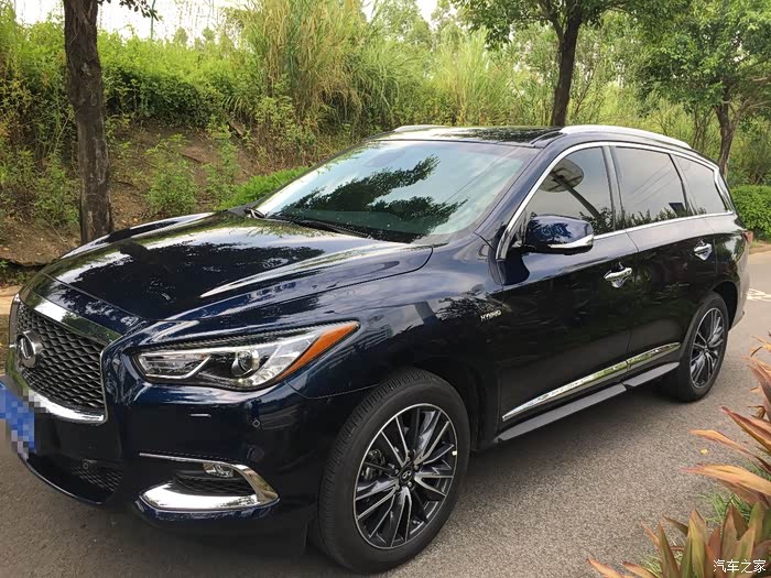 今年初,就一直想换一辆大一点的SUV原来的轿车,随着年龄的增长和家庭人数的增加,家里的轿车变得更加局促不已,更多空间的需求,安全性的需求,促使我咬咬牙,是时候换一个好一点的座驾了,以此犒劳辛辛苦苦孕育孩子,养育孩子的我,是的,我是一个妈妈。论坛泡了很久,大部分的车主都是男的为主,其实女人爱车爱起来,也是如痴如狂,不逊色于男人半分,只是对于机械的一些原理,男人懂得更彻底,而女人更注重车子的安全性和实用性。一个大的SUV才能满足我如今的需求,节假日要带着孩子父母一起出游,偶尔还要跑跑烂路,去郊区体验生活,选车之初看过汉兰达,看过Q7,看过雷克萨斯450,当然他们都拥有庞大的身躯,让我一个女汉子也为之折服,大是都够大了,空间应该都不愁了,那么我该考虑油耗的问题了,一比较之下,Q7超预算了,汉兰达太过硬汉风格了好像越野很不错,居家嘛,不太适合我这个女汉子,雷克萨斯也非常的好,这是我对日系车与日俱增的好感,它的车头凶狠霸气激进,非常阳刚,我想着我一个中年女人,开着这么凶狠的车不太合适。想来想去看来看去,还是觉得QX60比较合适家用而且还省油,就是优惠实在是很少啊,让我有点不开心,毕竟孩子他爸的钱也不是天下掉下来,能省点儿是点儿!,个人觉得新款QX60比老款好看多了,特别是前面,老款一杠杠的中网那里有点过时,现在换成水波纹更兼具一些美感!那么问题又来了QX60两驱和四驱到底选哪一个?最后问过了作为老车主的老邻居,他和我说了一句:四驱的好只有开过的人才知道!于是果断下手入了四驱版的!下面大家看看我家的憨厚老实人QX60!