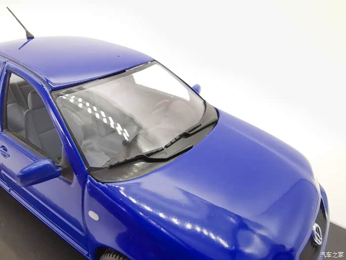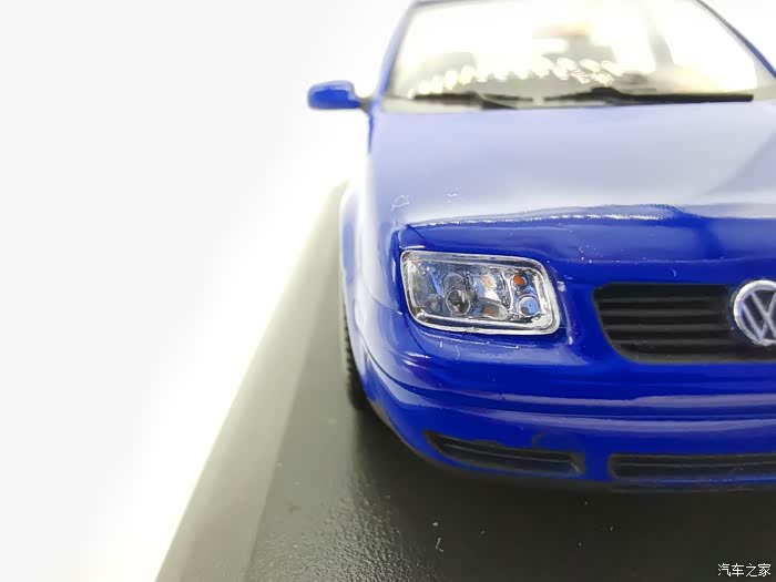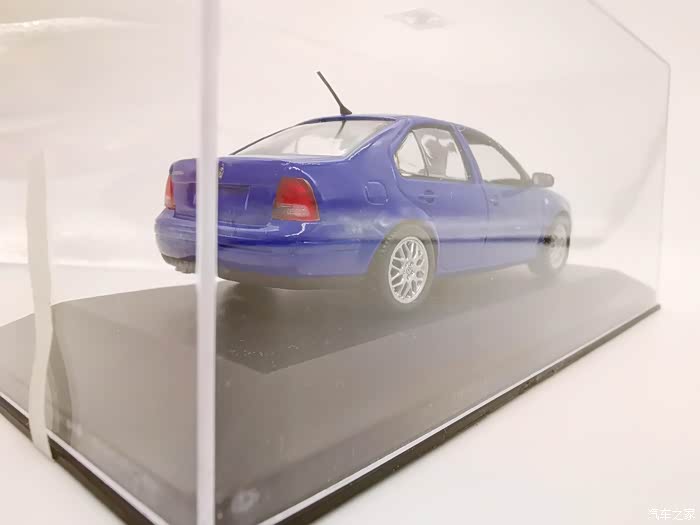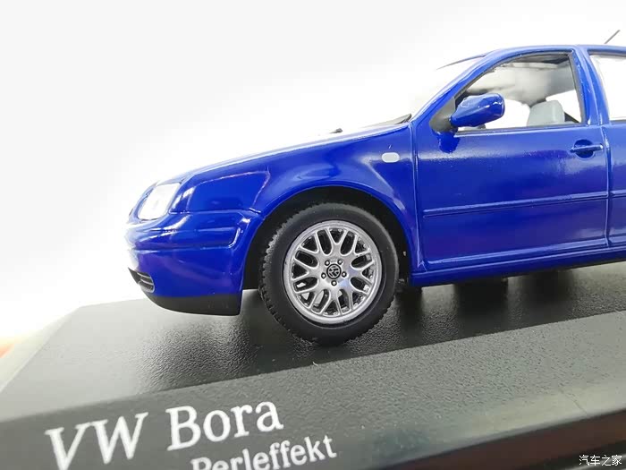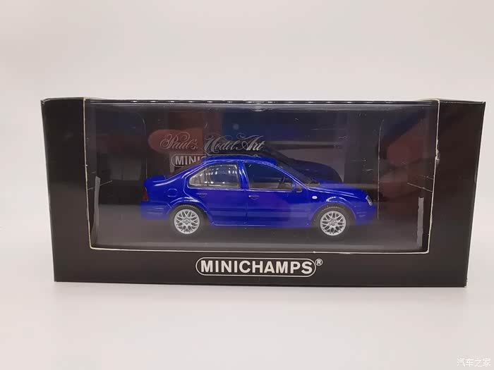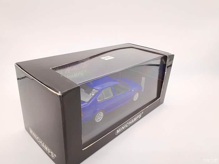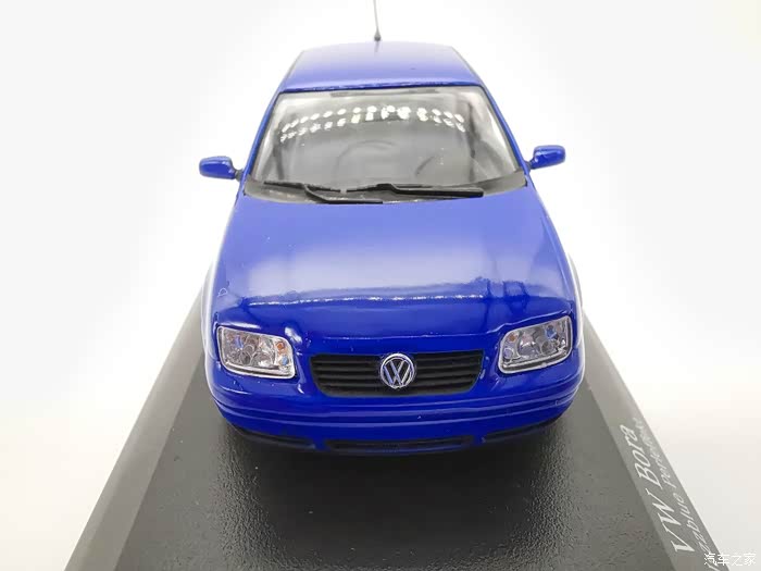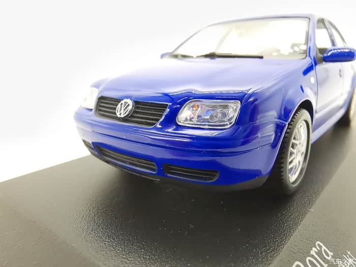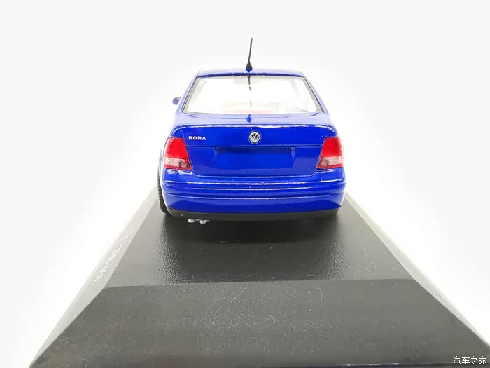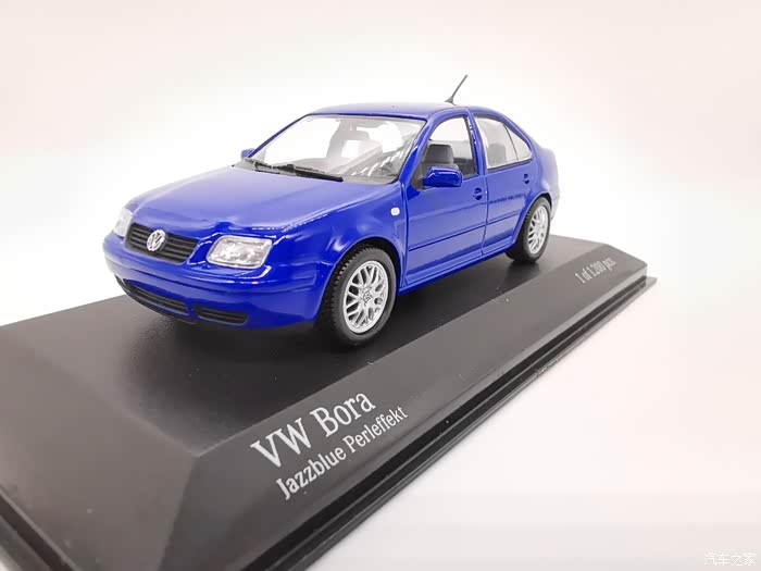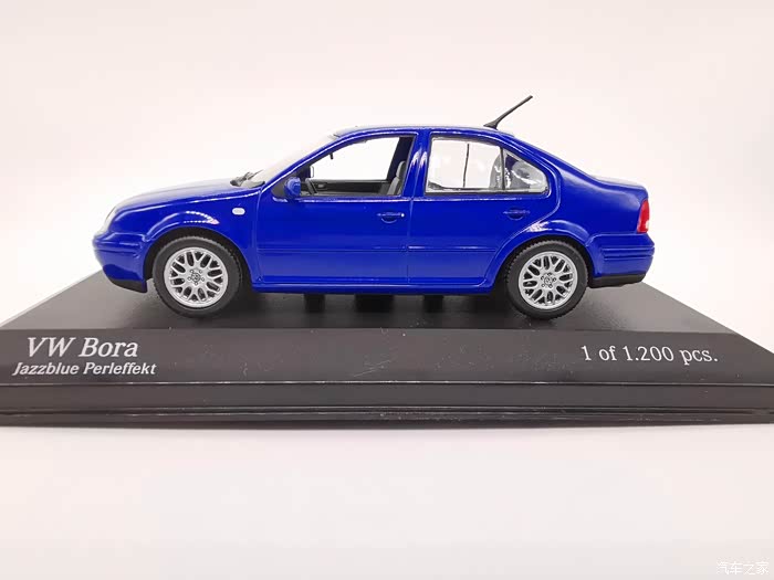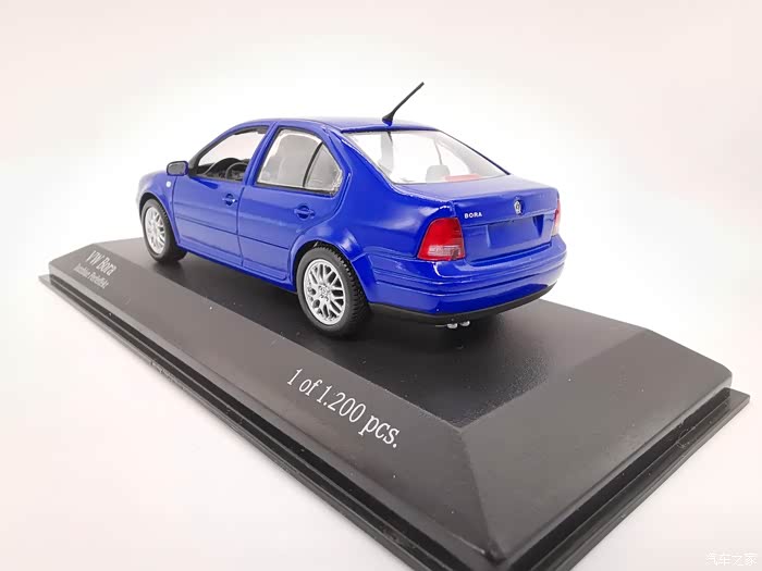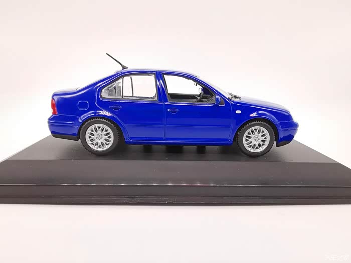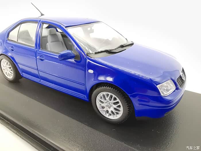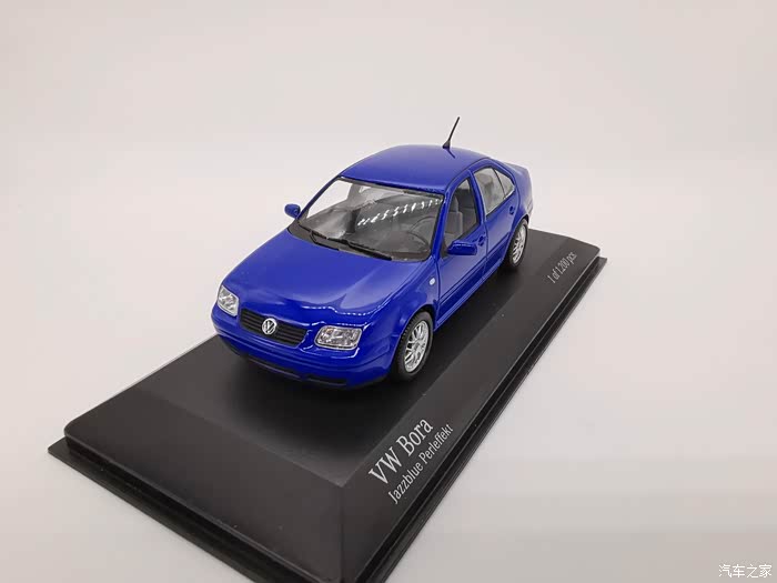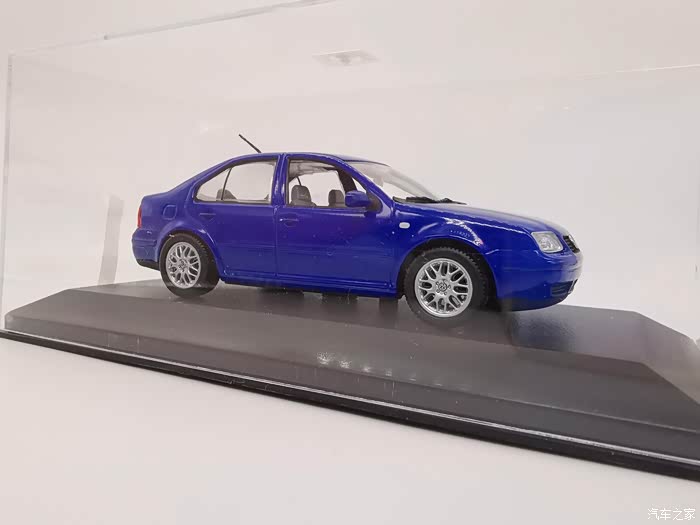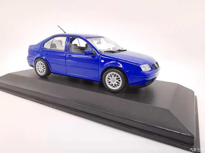 我今天给大家带来的这款车模正是当年有着驾驶者之车名号的宝来,迷你切品牌的,黑盒,这个在玩车模的圈子里面是个好东西,比例为1:43,这款宝来在国内的数量不多,蓝色的就更加稀少了,目前市场价在450-500元之间。一汽大众在当年推出过一批1:18的车模,某宝上还能见到,大家对比一下就轻松能看得出做工了,这款车模还原度很高,各种细节比例很不错,下面,咱们一起来看一下吧