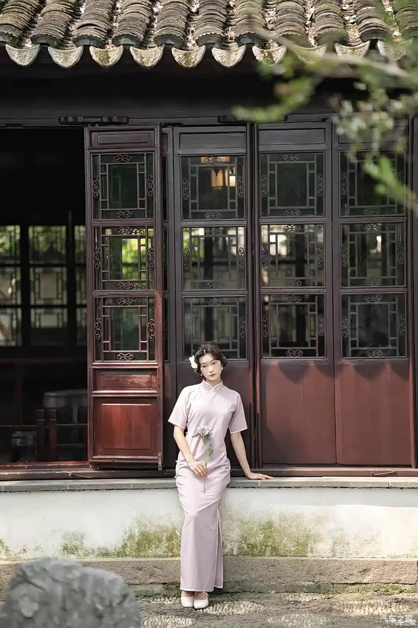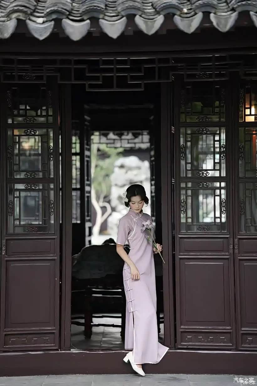 江南,本就是一幅泼墨的山水画卷,粉墙黛瓦,小桥流水,处处都散发着古朴而典雅的气息。为了契合这江南的韵味,我特意准备了一袭淡紫色的旗袍。那细腻的丝绸,精致的盘扣,还有流畅的剪裁,每一处都仿佛诉说着旧时光里的故事。