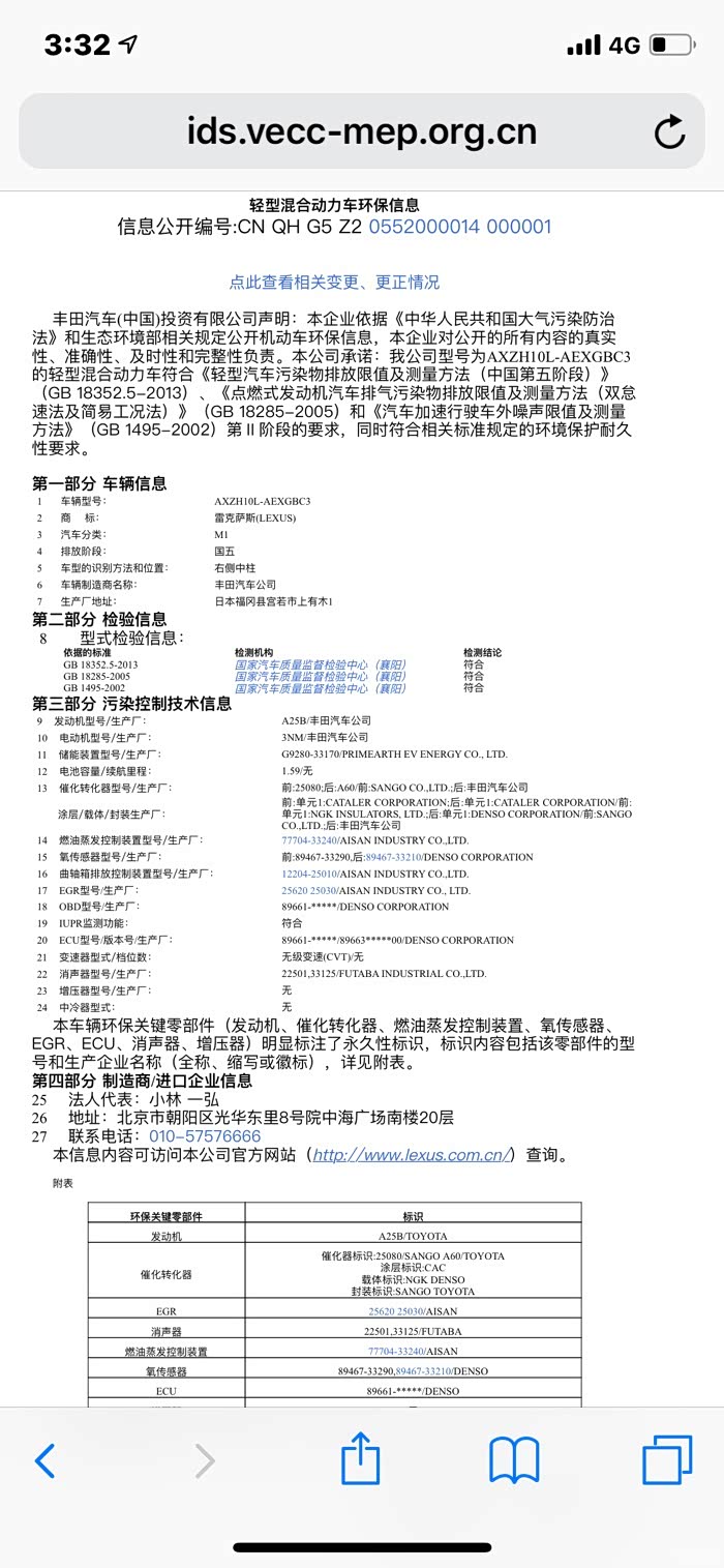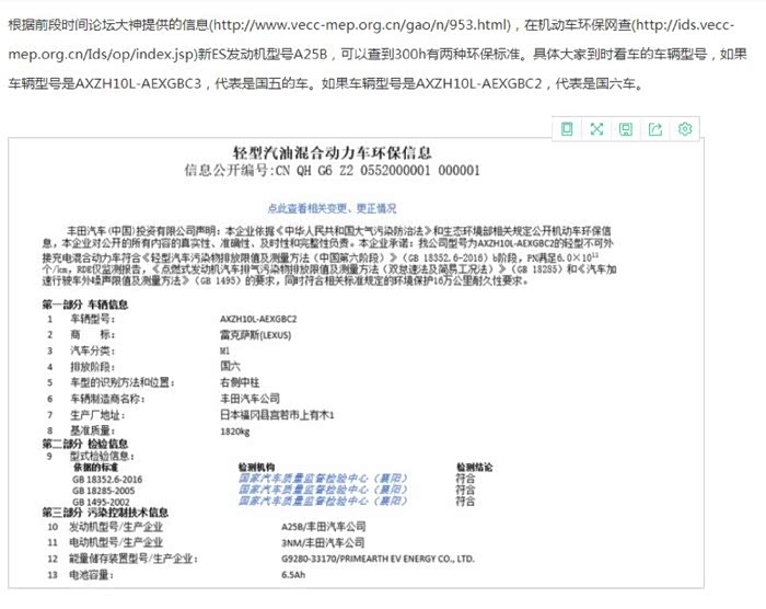 楼主辛苦了,有心人!找了很多资料,但很不幸雷克萨斯对不起你这样的车主!雷克萨斯一开始就是分别为es260和es300h 注册了两个产品型号,分别对应了国五和国六的排放证书,所以和生产日期没关系,和销售地区有关系,关单是什么型号自然对应什么排放证书。网上能明确的是北京和海南一开始可能就供应的是国六的B2型号,其它地区一直供的是国五的B3型号。至于19年1月1日以后会不会中国区统一升成国六排放,没有确切消息,所有的都只是谣言!我怀疑雷克萨斯能拖就拖,省一两千块钱也是省符合他们扣扣索索的作风,不排除继续分地域发货!我呼吁所有对这个排放标准不满的人给400打电话,让雷克萨斯认识到这个问题,积极解决这个...