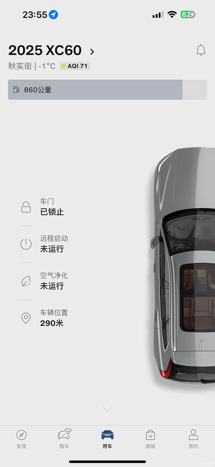 如果是IOS版本的软件,最新版的空气净化就是坏的。可以用apple watch的,或者Volvo Cars的。