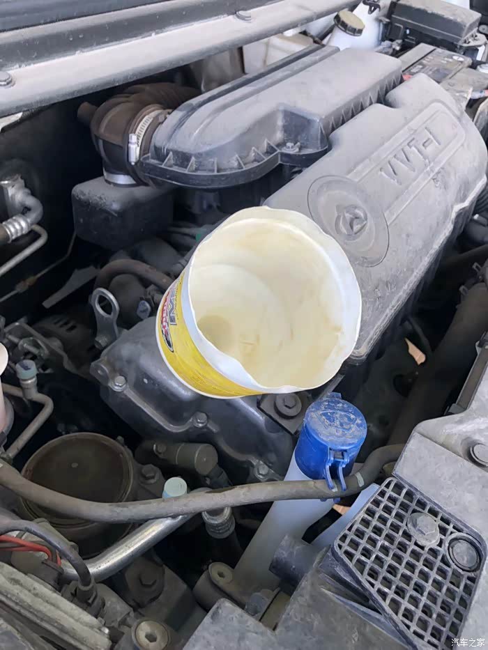 注油口设计的不是很好加,很容易洒出来。弄个工具吧……换油没什么好说的。有工具,会拧螺丝就能干。接下来换空调滤芯