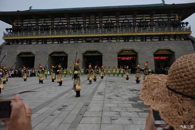 进唐城景区门口,是明德门,早上9点半,这边会有大型歌舞大唐迎宾,说实话,搞的还是有模有样,有一种穿越的感觉。