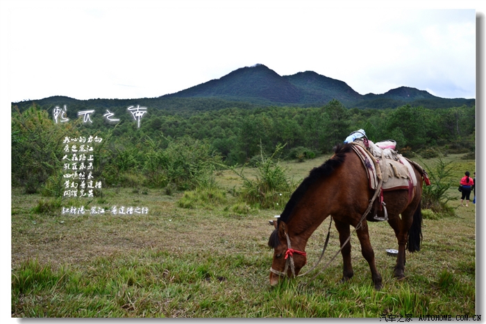本来看天气预报说是今天是阴天,并且会出太阳,想想这种天气正好是到拉市海骑马划船的最好日子啊,谁知道这高原的天气预报一点都不准确,应该还是第二天去好了,整个一天都是阵雨,特别是到了拉市海以后雨更大了,先去骑马,很刺激: