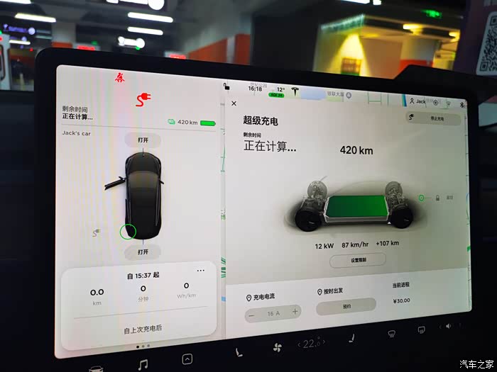 6,充电,提车时,特斯拉送了1500公里超冲额度,当天开到了浦东最大?特斯拉充电桩,丁香国际,大概有50多个充电桩,第一次充电,冲到420公里,大概用了一个多小时,坐车里等还真有点时间无聊,去商场喝杯咖啡,就不会觉得那么慢了。特斯拉超冲,取下冲电枪,充电盖自动打开,体验完美,用车载导航,导航到特斯拉超冲,还 能给电池加热,到了冲电桩,会有更快充电速度;但总体来说,从快没电,到充满基本都要一个小时,如果后续能压缩到半个小时,就更完美了;