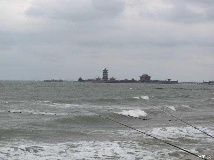 远处的蓬莱阁,走在岸边都能被浪打湿~
