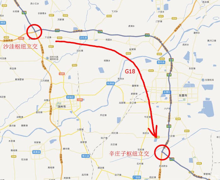 在青泊洼互通岔口向南走长深高速(荣乌高速),一路向南到沙洼枢纽立交(160公里)